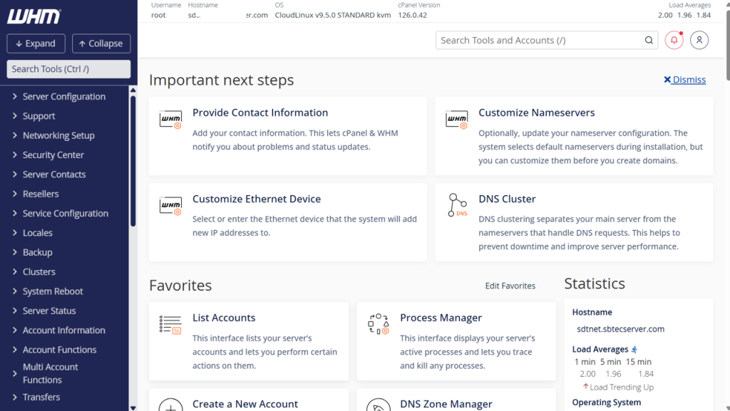 Setup de server cPanel/WHMManager de server cPanel/WHM